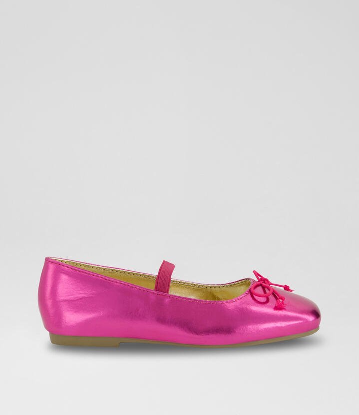 Kids will shine on special occasions with these metallic Ballet Flats. A simple, bow-topped design with an elastic strap to keep things secure, watch them hop, skip and twirl in delight as soon as they put them on.