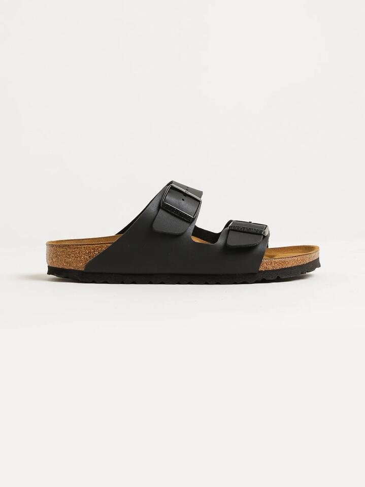 UNISEX BLACK BIRKO-FLOR ARIONA TWO-STRAP SANDALS by BIRKENSTOCK KEY FEATURES: – Narrow width footbed – The black straps are made from Birko-Flor, Birkenstock’s innovative animal-free material with a durable, smooth leather-lik…