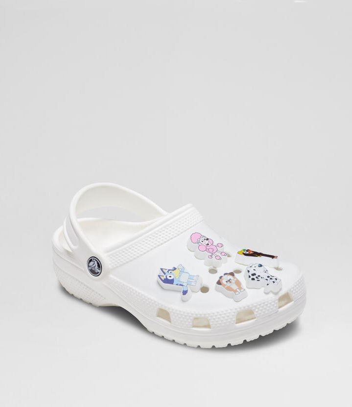 Pop some personality into your shoes with the Bluey 5 Pack Jibbitz™ charms from Crocs. Bluey and her friends make the perfect addition to your favourite pair of clogs, slides, and more.