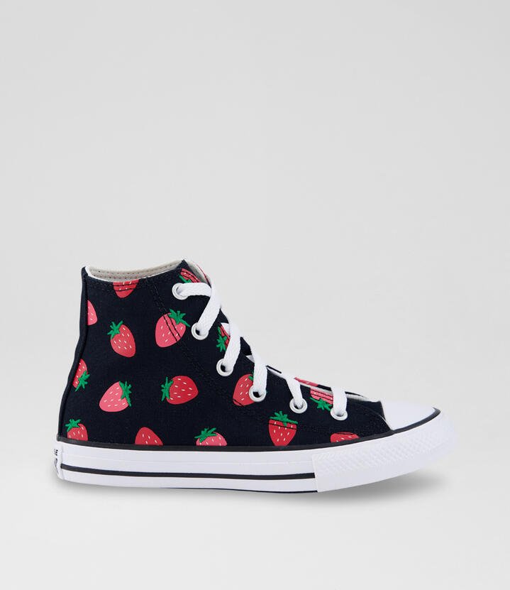 Ctas Hi Junior Black Pink Red Strawberry Canvas Sneakers