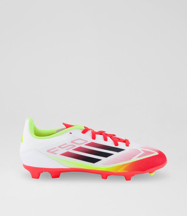 Free the fast with the adidas F50. Created to unlock the full potential of your acceleration, movement and speed. Keeping you cool with a perforated tongue, the Fiberskin upper on these juniors’ adidas League soccer cleats shows off a Sprintgrid print on the forefoot. Down below, the Sprintplate 360 outsole is built for propulsion on multiple surfaces.