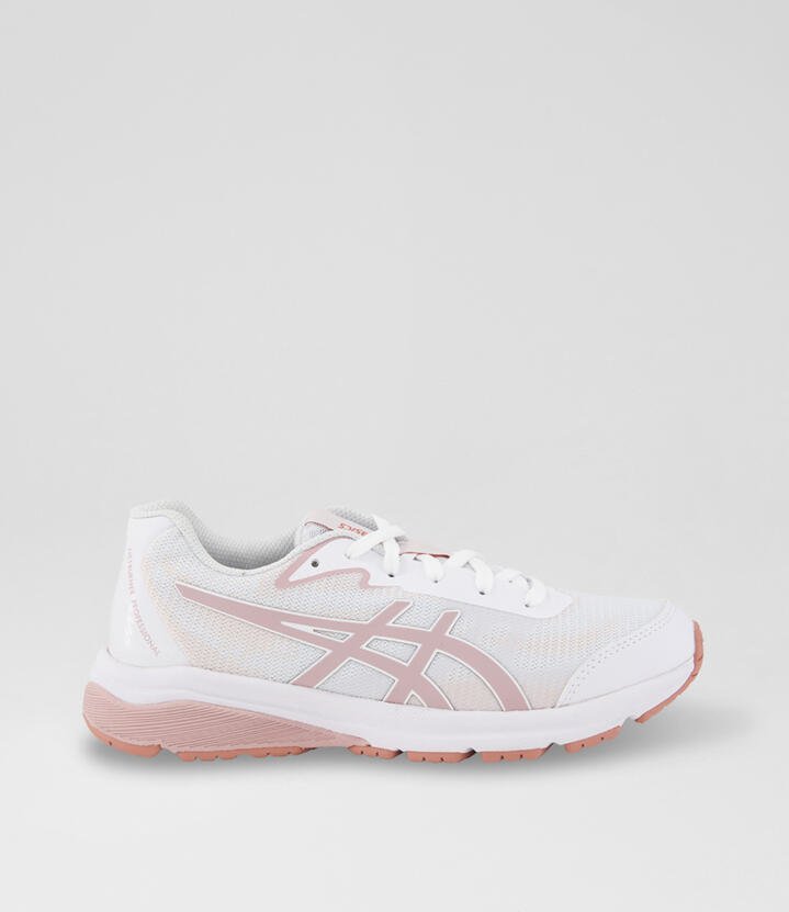 The GEL-NETBURNER PROFESSIONAL™ 4 shoe is designed for youth netball players seeking a lightweight and flexible shoe.? This shoe uses a kid’s-specific last that helps accommodate growing feet, while allowing better toe movement and support.? The upper is constructed with a combination of synthetic leather and PU material for comfort and support. The EVA midsole cushioning, together with rearfoot GEL technology gives a comfortable underfoot feel.