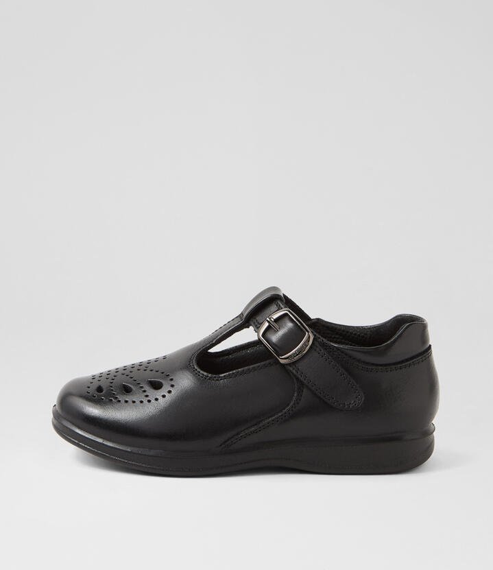 Hello Kitty Summer Junior E Black Leather Flat Shoes