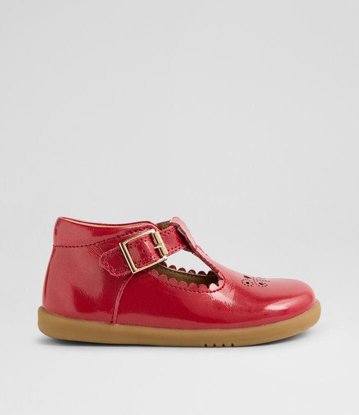 T-bar shoes with a sweet scalloped design, POPPY dresses up any outfit with ease. The buckled strap provides a secure fit, while the padded collar provides cushioning for the ankle. Pairing a classic leather silhouette with a flexible sole, POPPY has timeless appeal and effortless functionality. This design is suitable for confident young walkers.