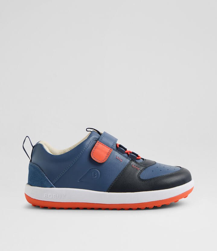 Amp up their style with the new BACKSPIN sneakers. Made from soft leather, this sporty style is as comfortable as it is stylish. Created in our new Bobux fit which pairs a lightweight EVA midsole with extra flex points on the bottom for increased natural movement, BACKSPIN also features a single hook-and-loop strap with laces for secure fastening. Made for confident, active kids.
