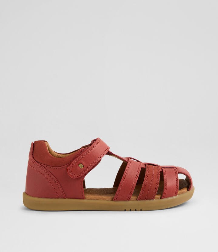 These classic summer sandals have a closed toe for added protection, while open sides provide airflow and breathability.The ROAM sandals boast an ankle strap fastening for a secure, adjustable fit, padded collar for comfort and our signature brass icon rivets add sophistication. Suitable for active kids, this Bobux style fits average width feet, and is true to size.