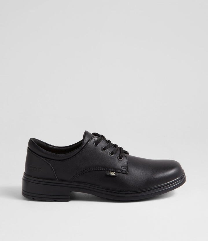 LARRIKIN JNR by ROC is a junior lace-up school shoe that features a stitched insole and flex controller polyurethane outsole for flexibility, comfort and durability. It is the perfect shoe for everyday wear thanks to its lightweight sole and breathable leather lining.