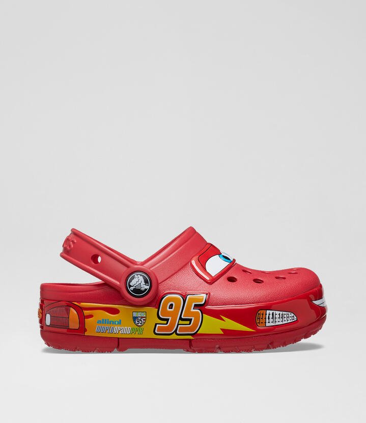 Ka-chow! Go faster than fast and quicker than quick with our kid’s Lightning McQueen clog. Each pair features Cars graphics and long-lasting LEDs that light up with every step so you can speed off in style.