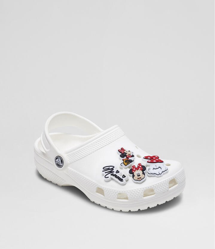 “Pop some personality into your shoes with these Minnie Dress 5 Pack Jibbitz™ charms. They’re the perfect addition to your favorite pairs of clogs, slides, and more”.Not a toy. Not intended for children under 3 years of age.
