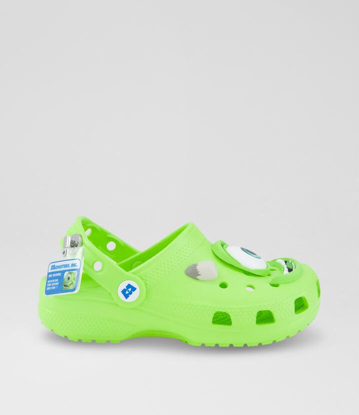 Step into the spotlight with the jokester of Monstropolis, Mike Wazowski! The Mike Classic Clog from our Disney and Pixar Monsters, Inc. collection was designed to embody all of the fun details of your favorite green cyclops, with dimensional face details fixed to the clog’s upper. Sink-in to ultimate comfort with our cushioned Croslite™ footbed stamped with the Monsters, Inc. logo.
