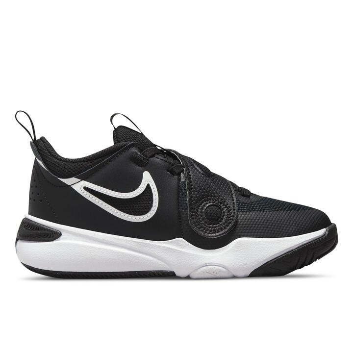 Ready for new basketball shoes? How about for gym class or just playing outside? Meet the Nike Team Hustle D 11. With this edition of our Team Hustle D series, our top priority is kicks that are super easy to get on and off. Elastic laces give you a wide opening while a big strap secures your fit. Plus, you get plush cushioning. The ultimate basketball and playtime shoe is back and ready to play.