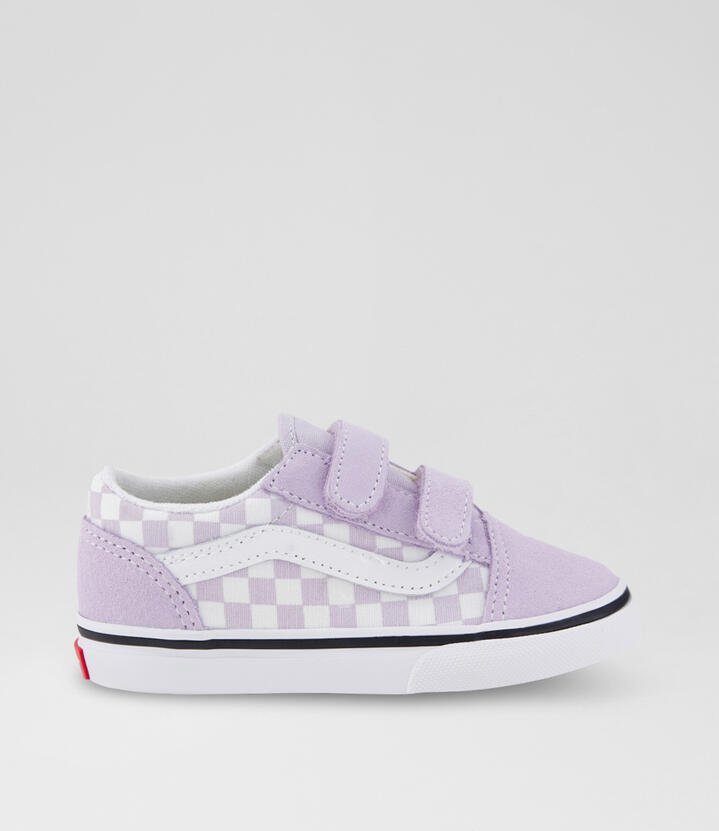 The Toddler Old Skool V Checkerboard reimagines our iconic Sidestripe shoe by swapping traditional laces for double hook-and-loop closures. Featuring our signature checkerboard print, this low-top style maintains its classic appeal while providing an easy, secure fit that keeps your little one comfortable all day.