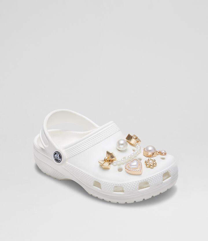 Pop some personality into your favourite Crocs clogs, slides and more with the PEARLY GOLD 5-pack of Jibbitz charms.