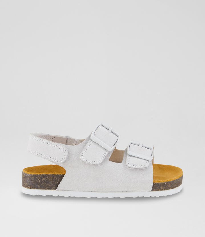 The suede REMY TODDLER sandals are a modern summer essential. Simple, contemporary styling makes this is versatile pair, while self-fastening straps make adjustments easy, and the added backstrap keeps things secure. The suede-lined cork footbed is both wearable and supportive, moulding to their feet over time for ongoing comfort.