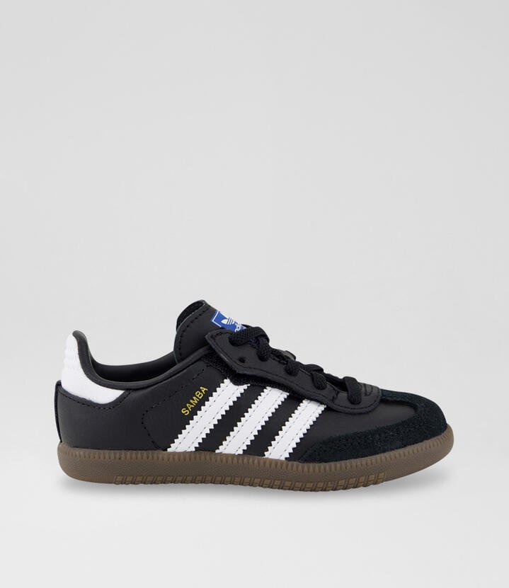 If you time travelled back to the 1960s, you’d find pro soccer players wearing adidas Sambas just like these infants’ shoes. Well, almost just like them. Sized down to fit little feet, they feature a soft sockliner that feels comfortable through all-day play. A leather upper, gum rubber sole and 3-Stripes stay classic.