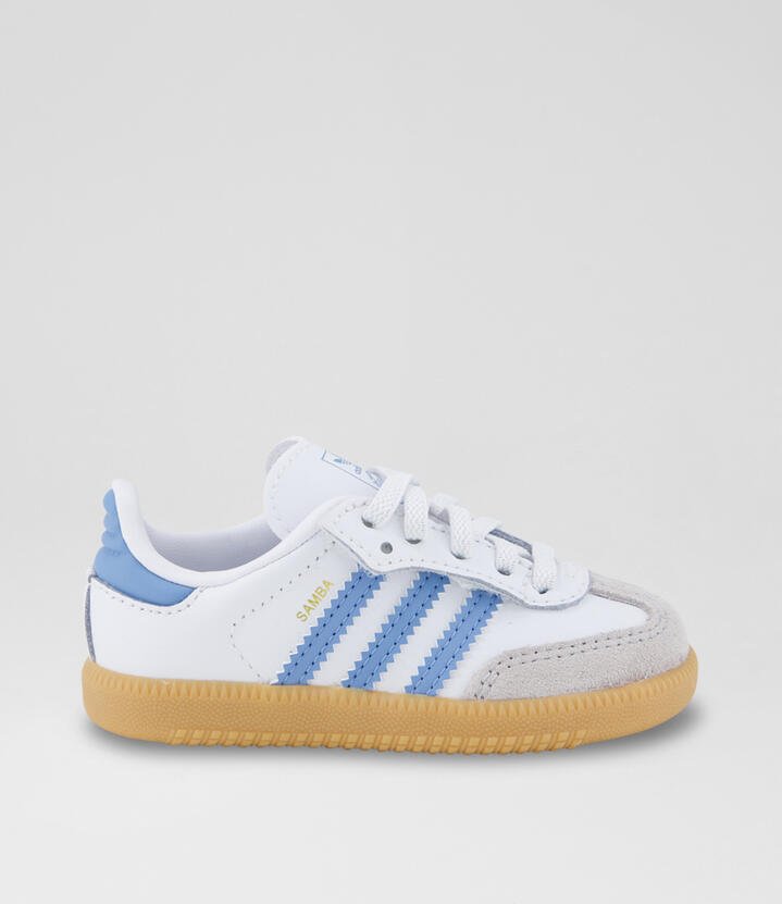 If you time travelled back to the 1960s, you’d find pro soccer players wearing adidas Sambas just like these infants’ shoes. Well, almost just like them. Sized down to fit little feet, they feature a soft sockliner that feels comfortable through all-day play. A leather upper, gum rubber sole and 3-Stripes stay classic.