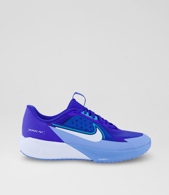 Nike Sonic Fly Big Kids’ Running Shoes Why run when you can fly? Designed for record breakers in the making, the Nike Sonic Fly pairs a lightweight design with soft, springy foam that helps add energy to every stride. Responsive Cushioning We packed the midsole with soft and springy foam that absorbs impact and adds energy to every stride you take. Lightweight But Durable Less weight means more speed. Mesh throughout the upper helps keep these shoes lightweight and breathable. We reinforced the toe and sides for added durability. Support You Can Feel A stretchy band under the laces helps add stability and containment. Traction That Keeps Up Rubber outsole with Waffle-inspired tread pattern helps provide durable traction.