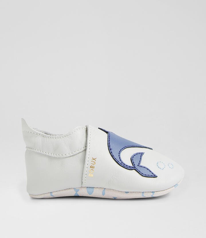 Delight their imagination with this cheeky BLUE WHALE from the Bobux collection. Featuring a breathable leather upper with an elasticated ankle, these Soft Sole shoes provide a comfortable and secure fit, while the non-slip sole is perfect for little ones keen to explore.