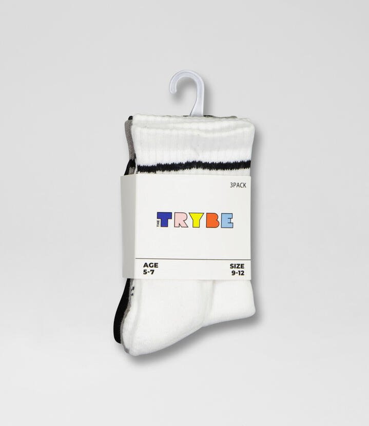 The Trybe Kids Socks are made for little feet, offering comfort and durability in every step. Crafted from a soft blend of 80% cotton, 15% polyester, and 5% elastane, they provide a breathable, stretchy fit that moves with your child while ensuring long-lasting wear. Perfect for everyday adventures!