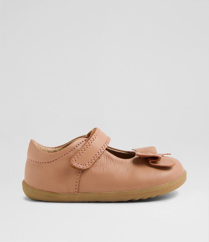 Sweet and stylish, it’s BOWYN! A beautiful Mary Jane crafted from buttery soft leather, BOWYN is topped with a simple bow, and fastened with a hook and loop strap for an easy, quick fit. Breathable linings and a padded collar keeps little feet comfy, while the flexible sole gives them the confidence to seek out adventures big and small. Suitable for first walkers.