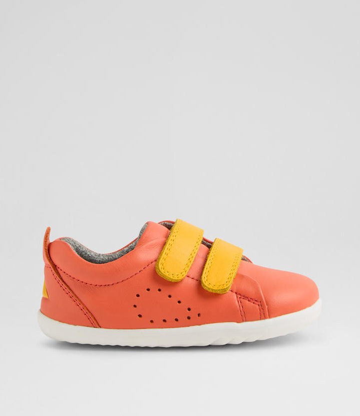These street-styled trainers are perfect for everyday wear. The premium leather upper is ultra soft and breathable, while a double strap closure provides an easy, secure fit. A cotton knit lining and padded heel make the GRASS COURT as comfortable as it is cool. Suitable for first walkers, this Bobux style fits true to size.