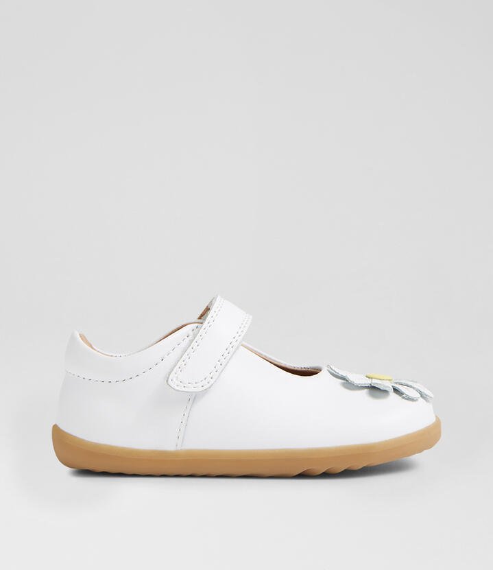 Sweet and simple, the PIXIE Mary Janes add an element of play to any outfit. A single hook-and-loop strap provides a secure and convenient fit and is perfect for small independent fingers to manage. Crafted from soft, fast-drying leather and topped with a daisy embellishment, PIXIE is a charming design for all occasions. This design is suitable for first walkers.