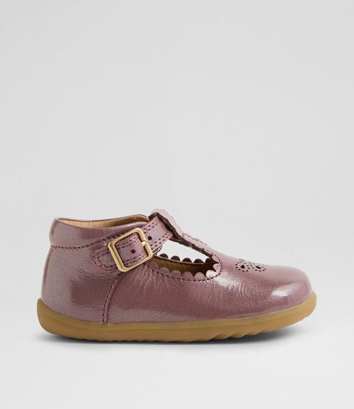 T-bar shoes with a sweet scalloped design, POPPY dresses up any outfit with ease. The buckled strap provides a secure fit, while the padded collar provides cushioning for the ankle. Pairing a classic leather silhouette with a flexible sole, POPPY has timeless appeal and effortless functionality. This design is suitable for first walkers.