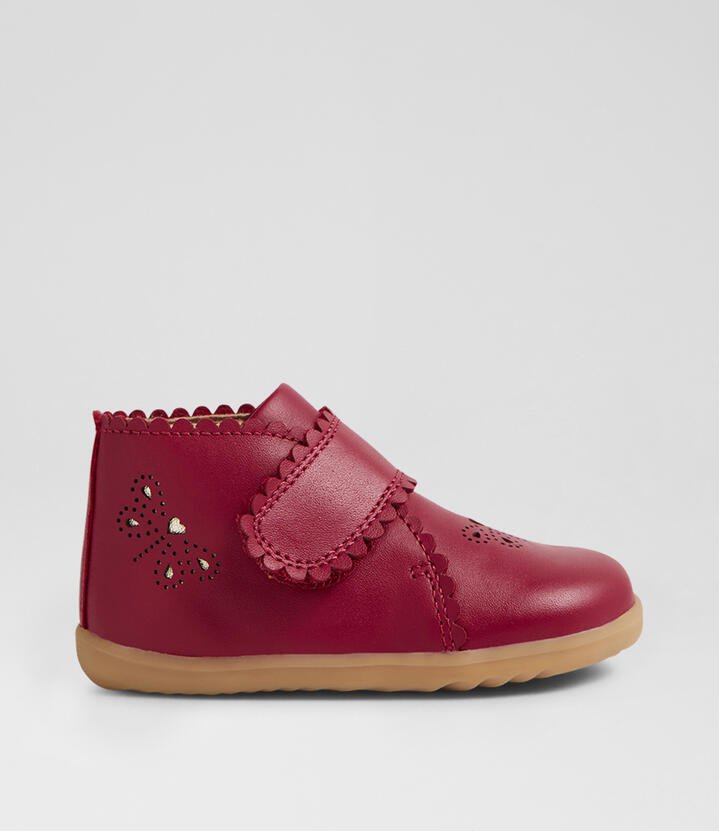 The WILLOW boots dress up any outfit with ease. The wide adjustable strap makes it easy for little hands to secure, while the sole flexes with the natural movement of the foot, keeping them comfortable on the go. Crafted in soft leather, WILLOW is enhanced with cut-outs and pinked edges for a stylish finish. This Bobux design is suitable for those taking their first steps.