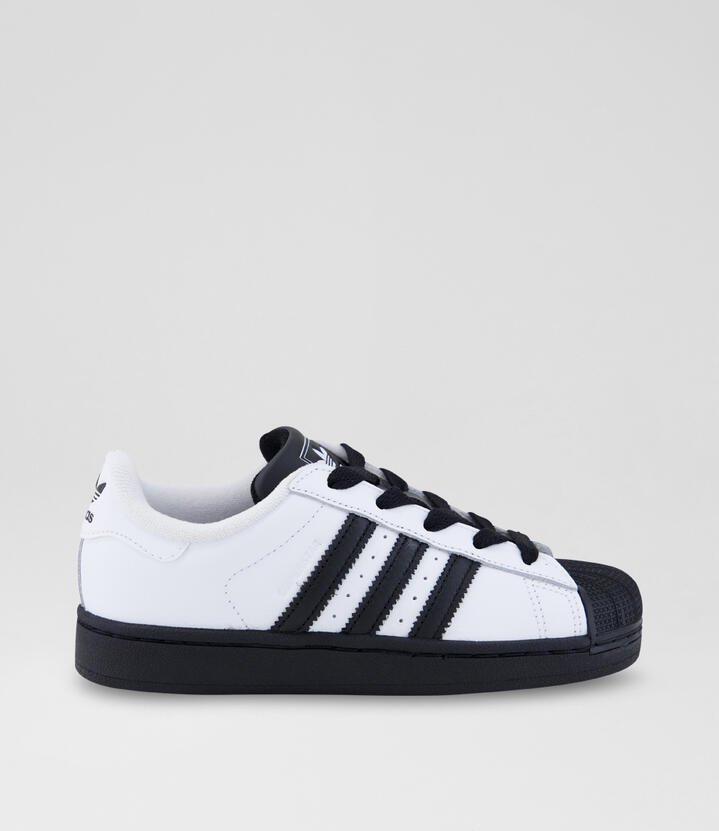 The Adidas Superstar II shoes are back and ready to dominate the streets once more. These juniors’ trainers provide all-day comfort with a moulded sockliner and structured leather upper. The stable rubber cupsole with classic herringbone traction pattern keeps you grounded and going in class and style.