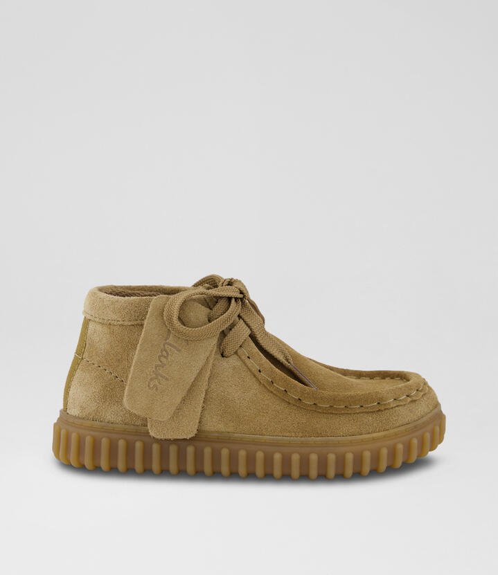 The bold, ribbed outsole that defines kids ankle boot Tor Hill is born from Clark archives. Showcasing a streamlined, lace-up design that models its curves and contours on the iconic Wallabee, it combines premium materials with thoughtful details like intricate topstitching to create the ultimate, heritage-inspired casual shoe.