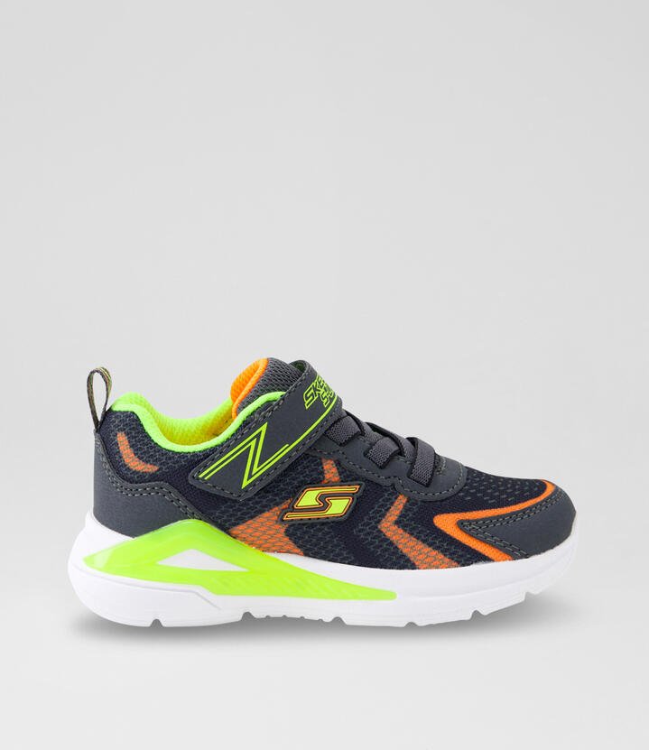 Light-up the fun in a quick flash with Skechers S-Lights®: Tri-Namics. This lightweight sporty design features a mesh and synthetic upper with stretch laces and a light-up midsole. WARNING: This product contains non-replaceable coin batteries. Coin batteries are hazardous and can cause severe or fatal injuries in as little as two hours if swallowed or placed inside any part of the body. Do not attempt to access the battery. Keep batteries away from children whether new or used. If you think that batteries might have been swallowed or placed inside any part of the body, seek immediate medical attention. You should also contact the Australian Poisons Centre (available 24/7) on 13 11 26 for fast, expert advice.