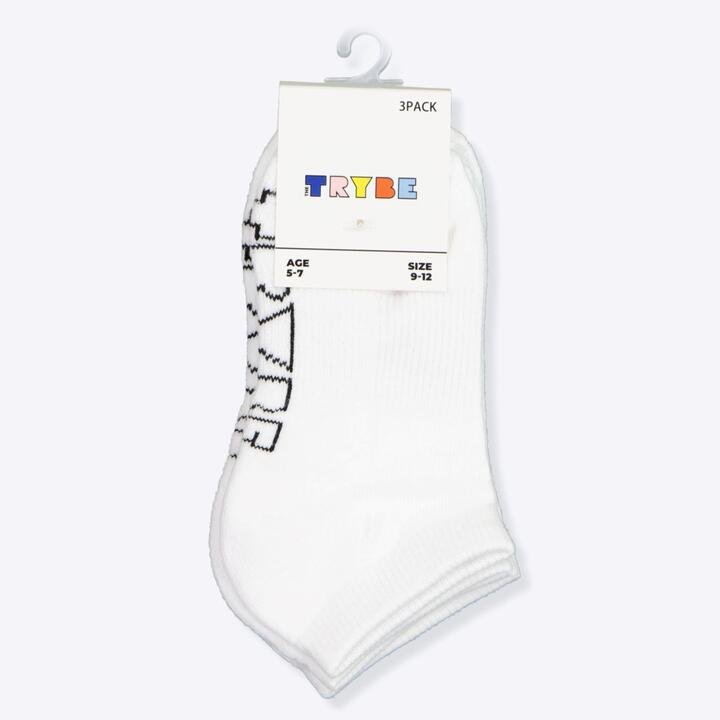 Trybe Socks Ankle Socks 3 Pack Kids White Unisex Size 13-3