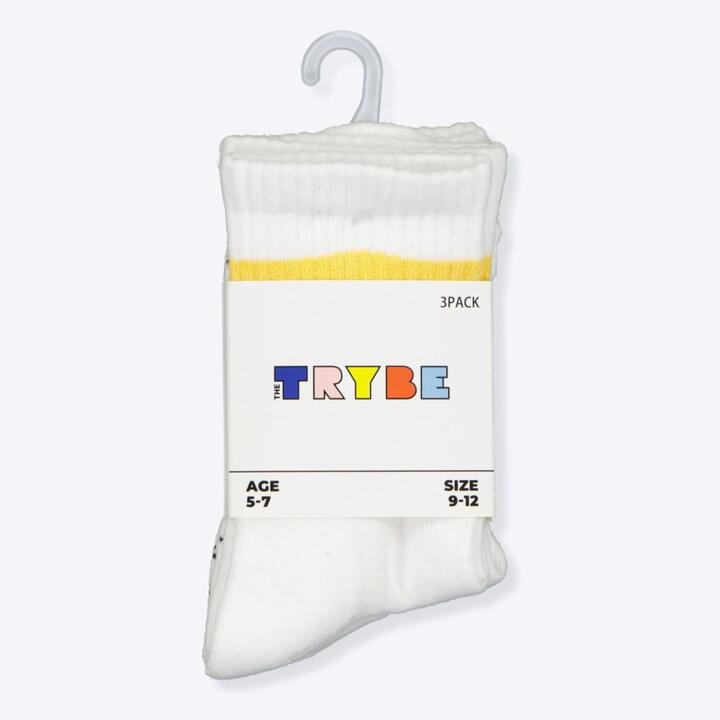 Trybe Socks Sport Stripe Half Crew Sock 3 Pack Kids White Multi Sports Stripe Unisex Size 2-4