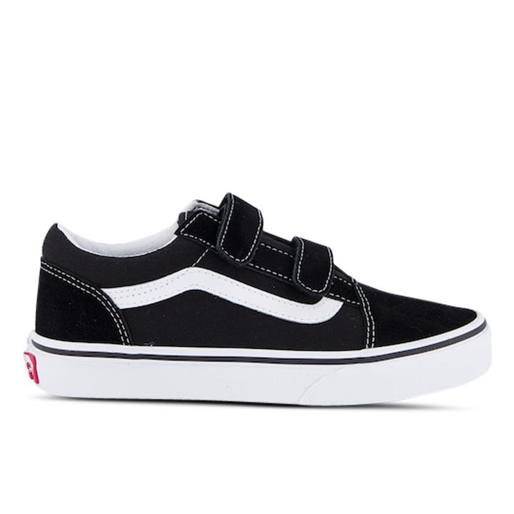 Kids Vans The Old Skool, the Vans classic skate shoe and first to bare the iconic sidestripe, is a low top lace-up featuring sturdy canvas and leather uppers, re-enforced toecaps to withstand repeated wear, padded collars for support and flexibility, and signature rubber waffle outsoles.