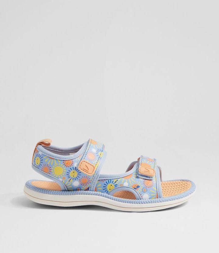 The patterned FLORENCE sandal by Clarks is perfect for active little kids with a love of the outdoors. A simple strap design they can wear every day, it features riptape touch-fastenings for a secure fit and a durable TPR sole for great grip across multiple terrains.