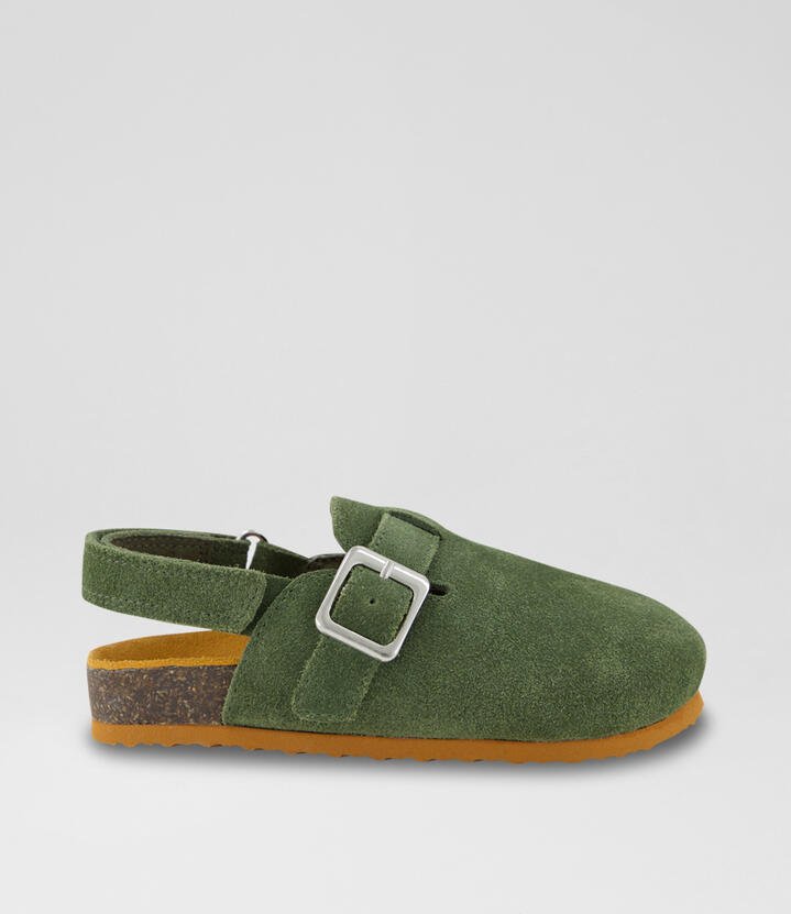 The suede FRANKIE TODDLER clogs combine modern looks and casual comfort. The timeless, closed-toe silhouette makes it the perfect essential in any season, and the convenient backstrap makes the pair quick to secure – or to kick off! The suede-lined cork footbed is both wearable and supportive, moulding to their feet over time for ongoing comfort.