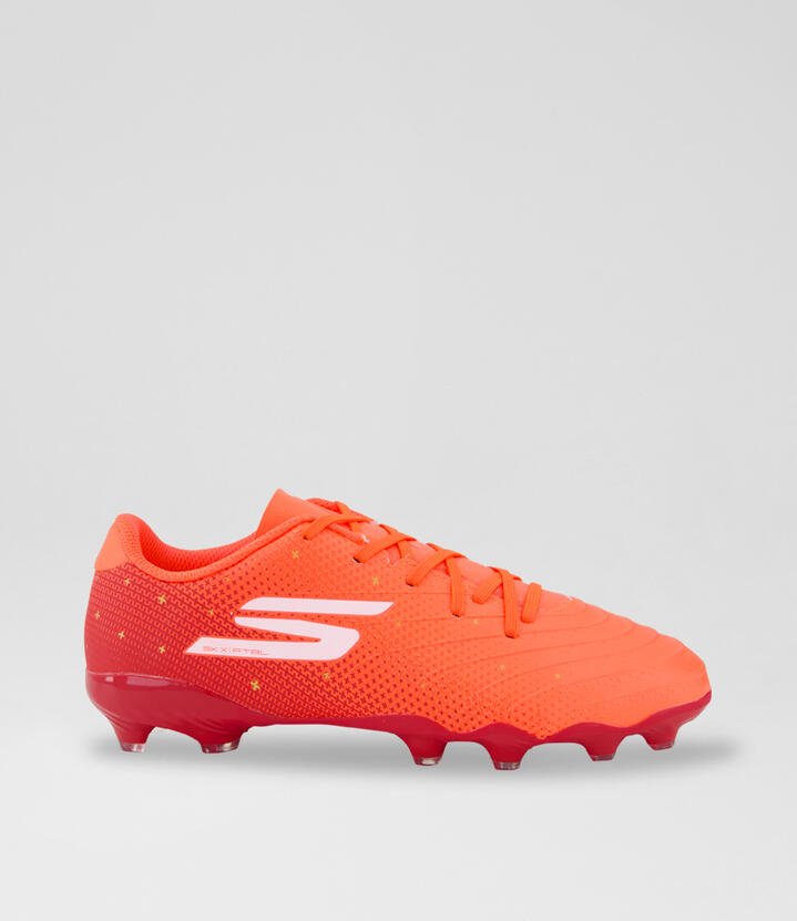 Train like a future pro with Skechers Soccer: HK Player Edition SKX_1.5 Jr Youth FG. This lightweight firm ground boot features upper molding engineered for precise ball control, a responsive TPU plate, soft upper, and EVA sockliner for added comfort.