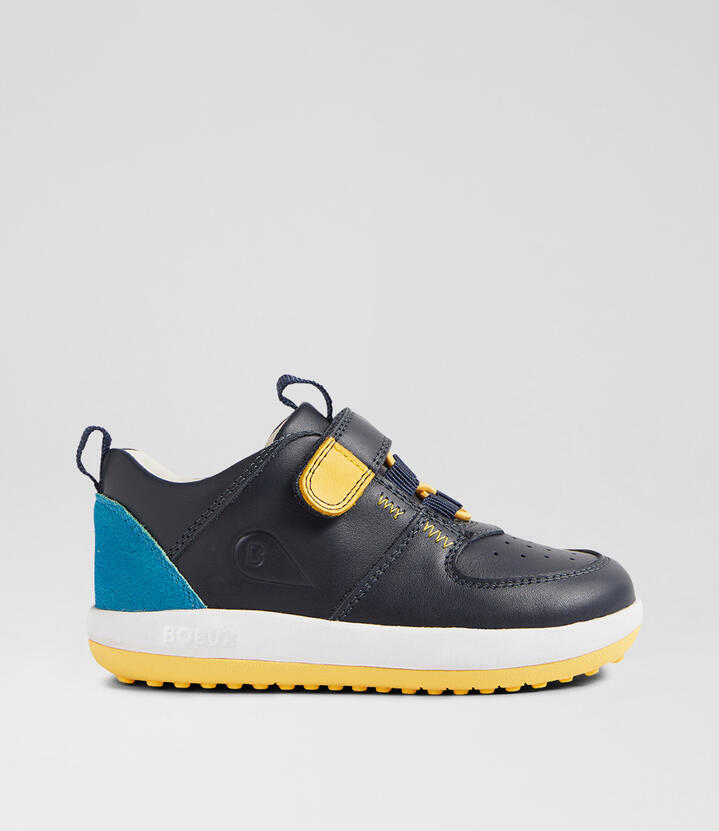 Amp up their style with the new BACKSPIN sneakers. Made from soft leather, this sporty style is as comfortable as it is stylish. Created in our new Bobux fit which pairs a lightweight EVA midsole with extra flex points on the bottom for increased natural movement, BACKSPIN also features a single hook-and-loop strap with laces for secure fastening. Made for confident young walkers.