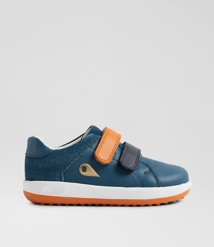 Casual leather sneakers are a wardrobe staple for little feet. A comfortable sporty style with double hook-and-loop straps, the BREAKPOINT sneaker will win the day, hands down. Created in our new Bobux fit which pairs a lightweight EVA midsole with extra flex points on the bottom for increased natural movement. Made for confident young walkers.