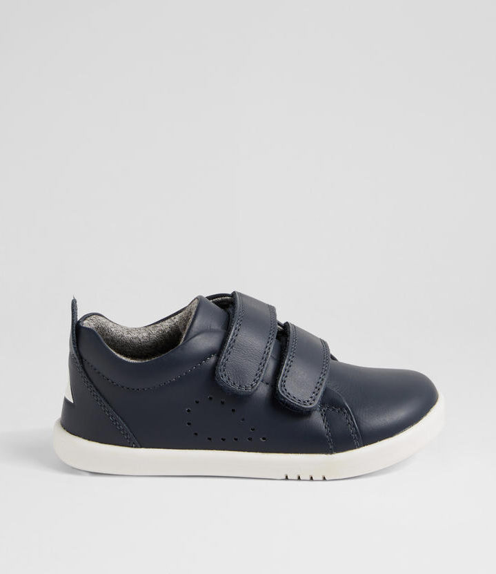 These street-styled trainers are perfect for everyday wear. The premium leather upper is ultra soft and breathable, while a double strap closure provides an easy, secure fit. A cotton knit lining and padded heel make the GRASS COURT as comfortable as it is cool. Suitable for confident walkers, this Bobux style fits true to size.
