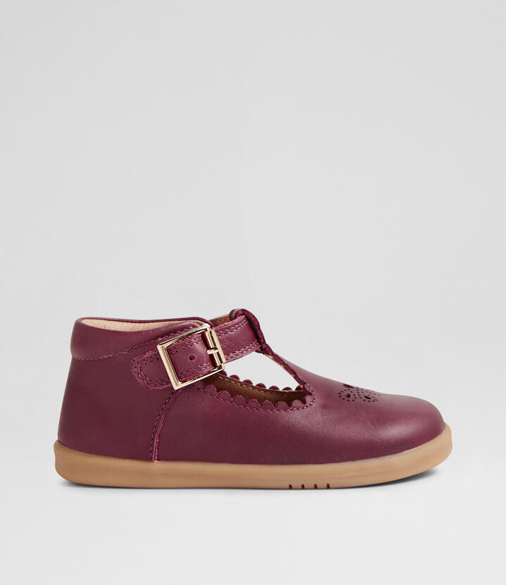 T-bar shoes with a sweet scalloped design, POPPY dresses up any outfit with ease. The buckled strap provides a secure fit, while the padded collar provides cushioning for the ankle. Pairing a classic leather silhouette with a flexible sole, POPPY has timeless appeal and effortless functionality. This design is suitable for confident young walkers.