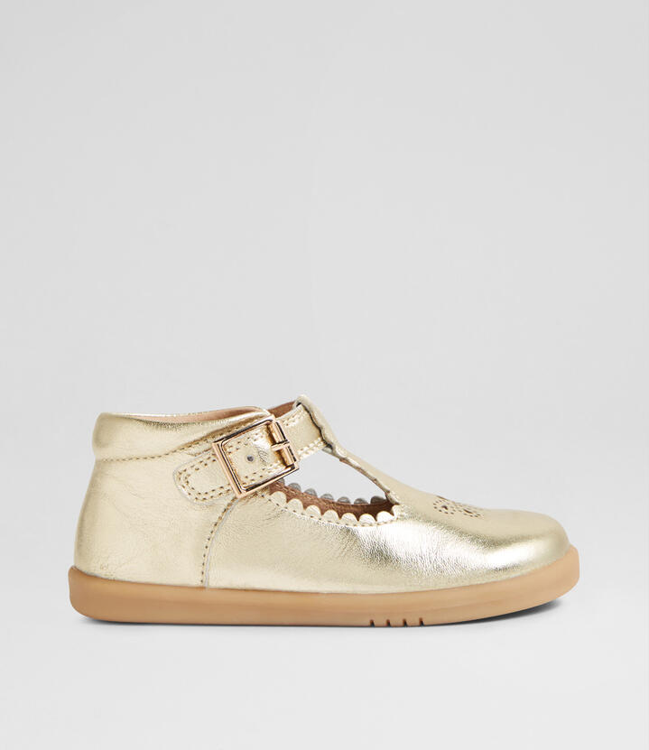 T-bar shoes with a sweet scalloped design, POPPY dresses up any outfit with ease. The buckled strap provides a secure fit, while the padded collar provides cushioning for the ankle. Pairing a classic leather silhouette with a flexible sole, POPPY has timeless appeal and effortless functionality. This design is suitable for confident young walkers.