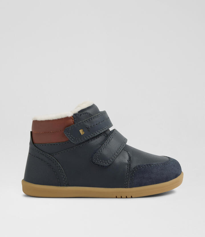 Lined with soft woolly merino and featuring Bobux’s SPLASHTEX® internal waterproof membrane, the TIMBER ARCTIC boots keep kids feet warm and dry in the coolest of climates. The padded ankle cuff and adjustable strap fastenings make for street smart boots while the high-top design and stitch detailing add timeless style. Suitable for confident walkers, this Bobux style fits true to size.