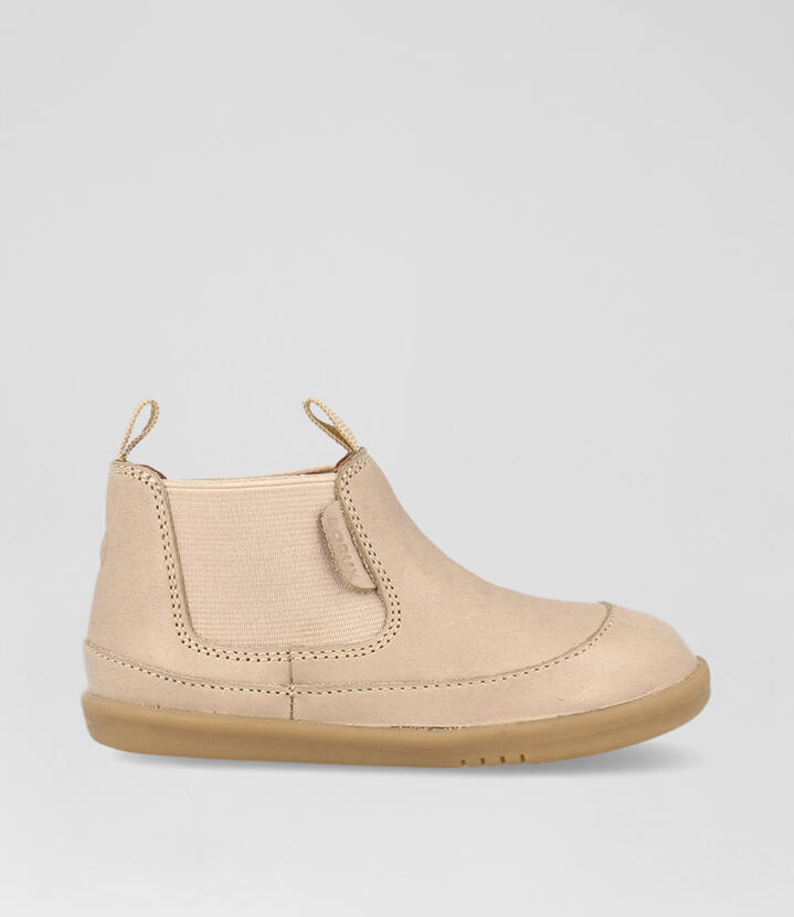 The TRAVELER is the Bobux take on classic Chelsea boots. This versatile slip-on has a comfortable mid-cut that is easy for little hands to manoeuvre. A luxe leather finish makes for enduring style that works with every trans-seasonal outfit. Crafted under the Bobux natural movement philosophy, the flexible sole nurtures growing young feet. Suitable for young walkers who are growing their confidence.