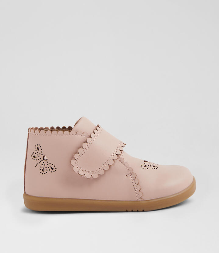 The WILLOW boots dress up any outfit with ease. The wide adjustable strap makes it easy for little hands to secure, while the sole flexes with the natural movement of the foot, keeping them comfortable on the go. Crafted in soft leather, WILLOW is enhanced with cut-outs and pinked edges for a stylish finish. This Bobux design is suitable for confident young walkers.