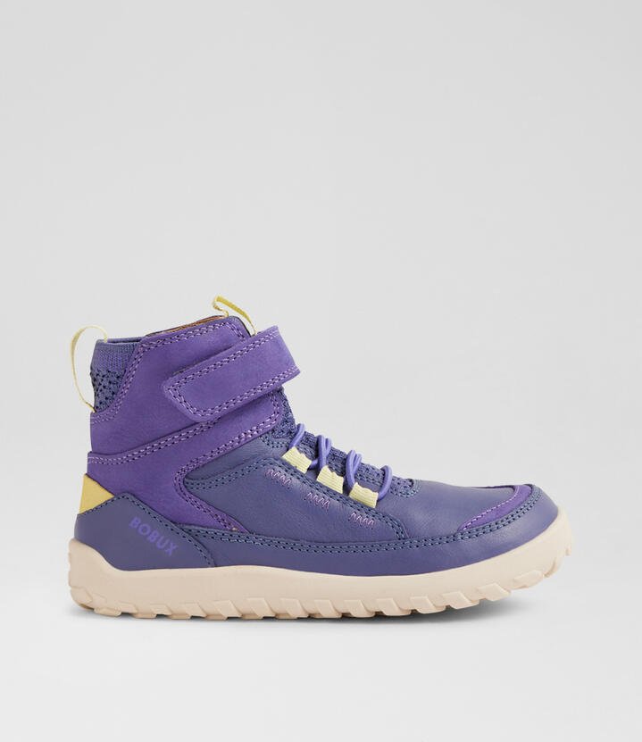 Outdoorsy kids will keep up on any terrain with AMBLE. Crafted from rugged but foot-friendly leather, AMBLE is a high-cut style with a knit sock and single adjustable strap – perfect for keeping out dust, pebbles and twigs when they’re out in nature. The durable, grippy sole has deep lugging that ensures they feel confident on a variety of surfaces, whether that’s playground adventures or hikes with mum and dad. This design is suitable for active kids who move with confidence.