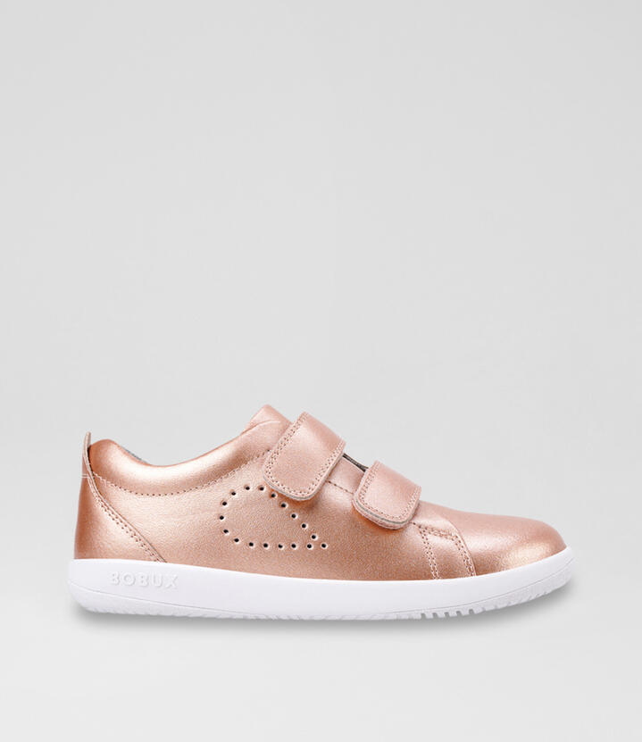 GRASS COURT are street-styled trainers that are perfect for everyday wear. Crafted in premium leather, this on-trend shoe is ultra soft and highly breathable, while a double strap closure offers an easy, secure fit. With a cotton knit lining and padded heel that is shaped for formed feet, it’s as comfortable as it is cool. Suitable for active kids, this Bobux style fits true to size.