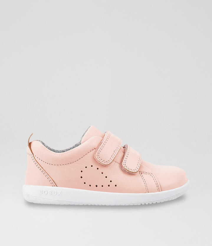 GRASS COURT are street-styled trainers that are perfect for everyday wear. Crafted in premium leather, this on-trend shoe is ultra soft and highly breathable, while a double strap closure offers an easy, secure fit. With a cotton knit lining and padded heel that is shaped for formed feet, it’s as comfortable as it is cool. Suitable for active kids, this Bobux style fits true to size.