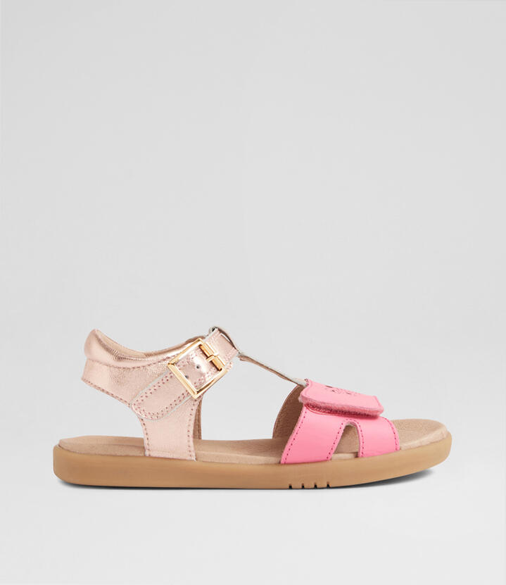 Kp Haven Junior Rose Gold Pink Lemonade Leather Sandals
