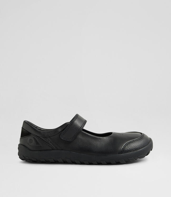 Start the school day the right way with these black leather Mary Janes. A traditional style made with comfort and durability in mind, HULA is crafted from soft, breathable leather and fastens with a simple adjustable strap. The padded collar and leather lining add subtle but impactful comfort that lasts, while the toe cap and durable, rugged sole provides protection and grip during playtime, ensuring HULA supports them from morning to afternoon.